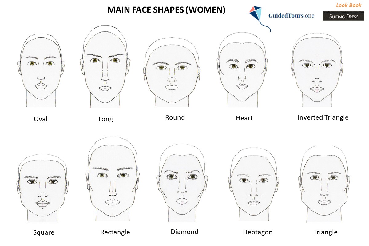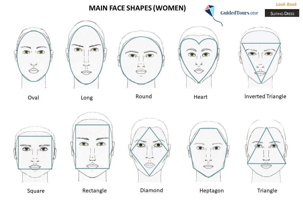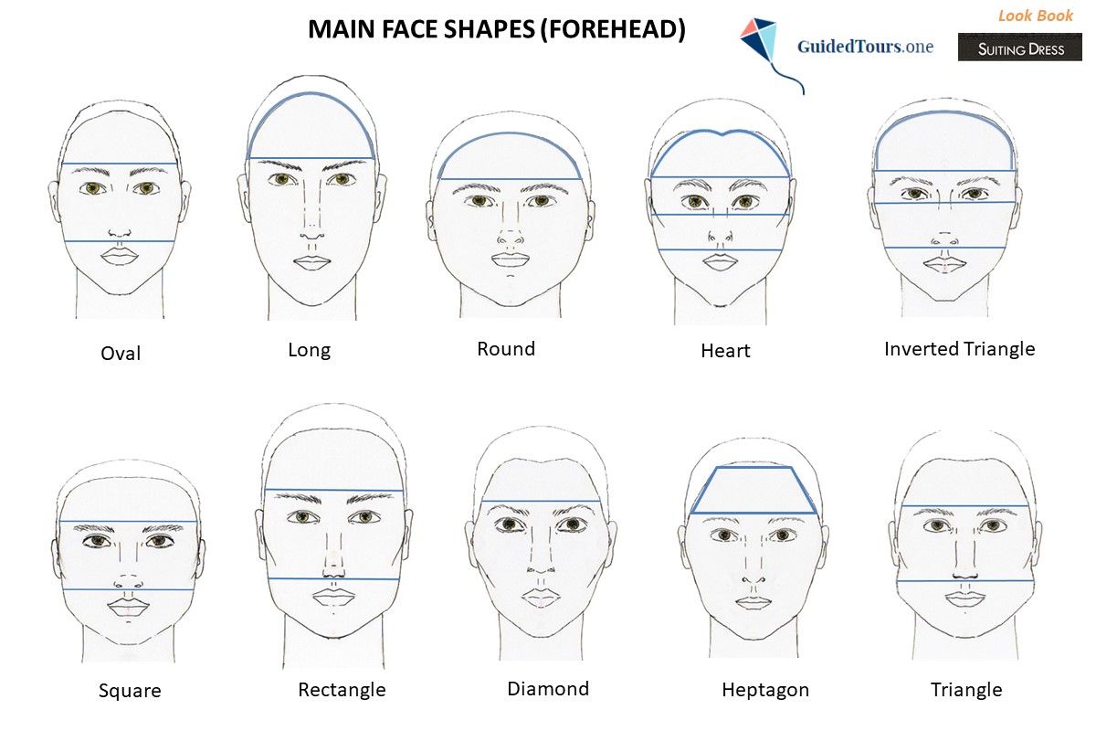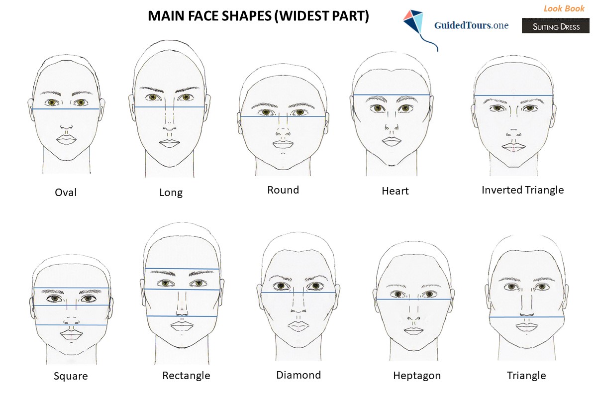 There are 10 main face shapes, which are based on the proportions of different face shapes and primarily use face length, face width, forehead width, cheekbone width, and jawline width as a guide: