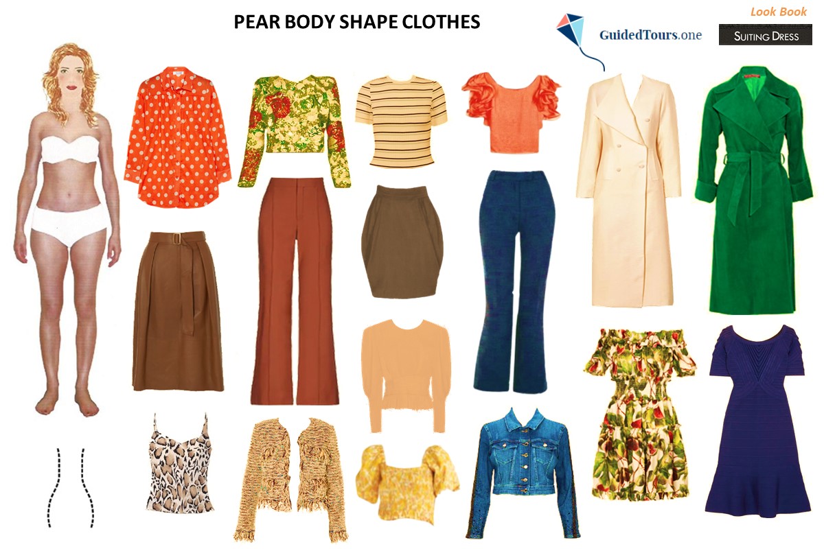 As the shoulders of pear body shaped women are narrower, wide necklines (off-shoulder, bateau, and Sabrina necklines) optically widen the shoulder and bust area. If your bust is particularly small, focus on a sweetheart neckline that creates soft, rounded lines.
