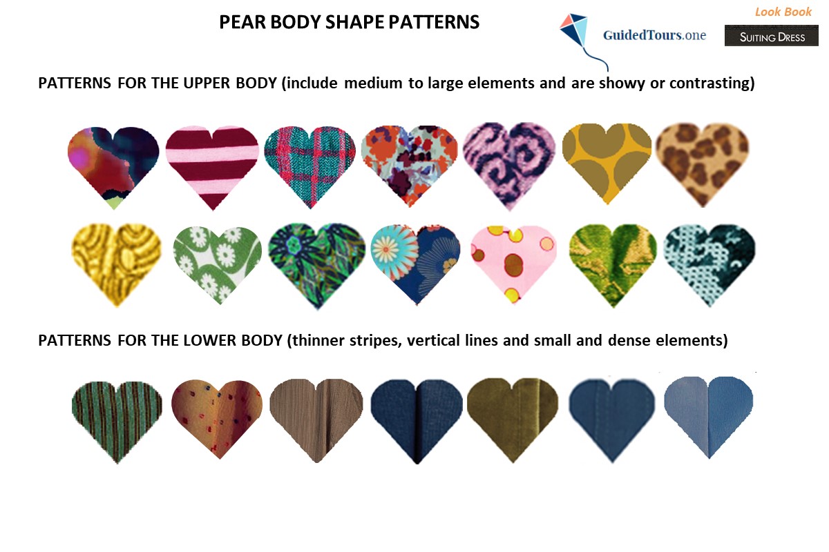 When it comes to patterns, opt for those that include medium to large elements and are showy or contrasting for the upper body. Patterns like horizontal stripes, animal print, polka dots or floral will accentuate the curves of the pear body shape, thus it’s advisable to choose them for the upper body. Instead, opt for patterns including thinner stripes, vertical lines and small and dense elements with a low contrast between them for your lower body. As the pear body shape is characterized by a curvy, rounded figure, polka dots, swirls and floral patterns will add softness and femininity to this silhouette.