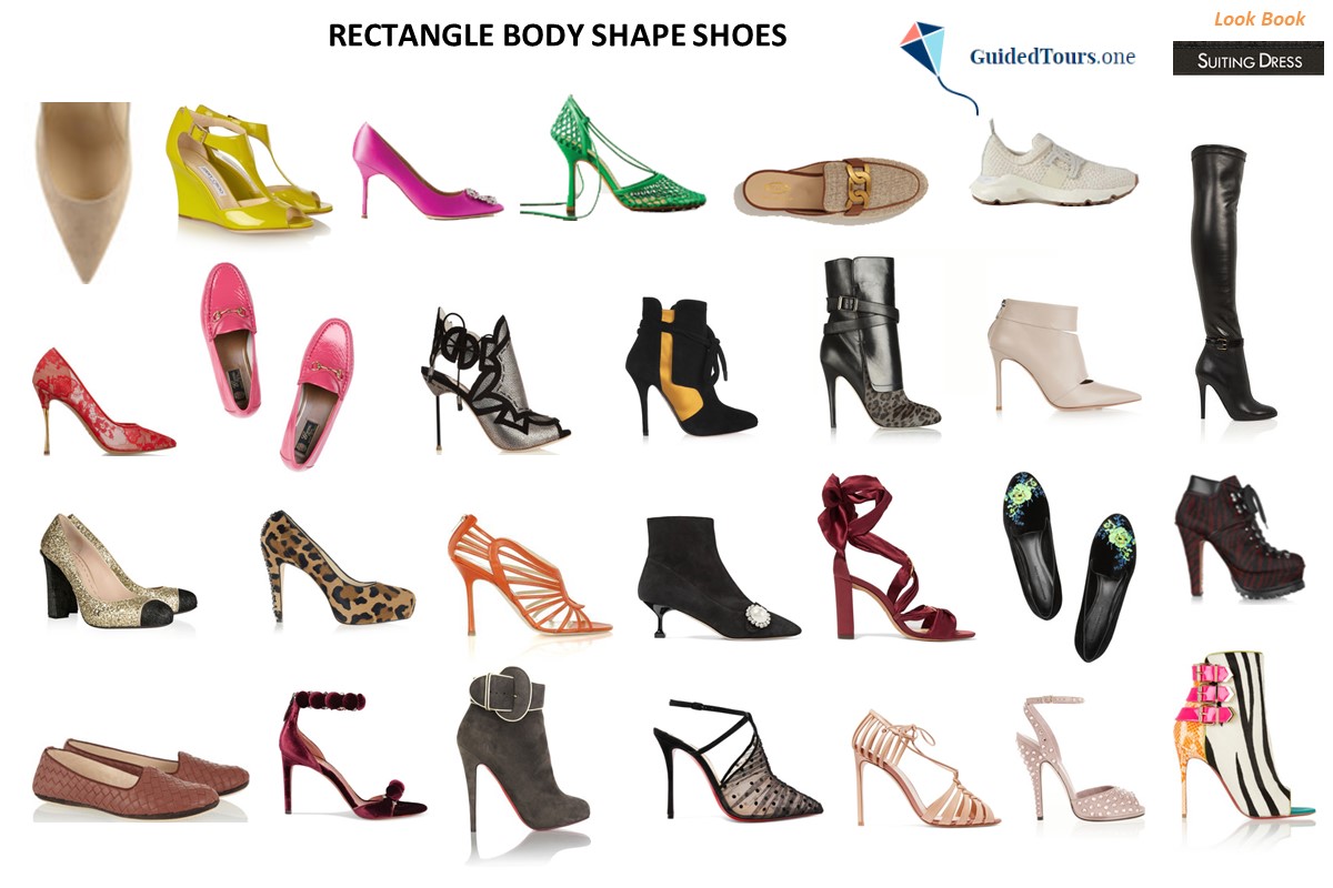 Therefore, taking into account the measurements, rectangle-shaped women can wear loafers, ballet flats, pumps, and boots of any type, but especially of any height. As your legs already have some centimetres more compared to the torso, you can easily break up the leg at the ankle with a pair of contrasting colourful and eccentric shoes, as well as ankle straps and everything that usually penalizes short legs. At the same time, you can choose pointed-toe shoes for a more sophisticated look, or round or oval-toe shoes for a more feminine appearance. Mules or slip-in shoes in low heels can give your frame that subtle volume boost without overwhelming the slender appearance of your legs. Paired with the right clothes, you can instantly achieve a more flattering upper and lower body ratio.